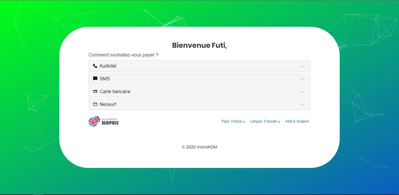 Voici mon module de Paiement en PHP ressemblant à la boutique de FunCraft/BRW Serv. qui peut se synchroniser avec n'importe quel serveur Minecraft, CSS/HTML/PHP totalement personnalisable, liaison à votre serveur via RCON (Console). Ce formulaire marche avec Dédipass pour ceux qui ne savent pas installer, contactez moi sur discord: NEATH#2567